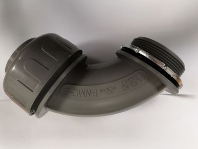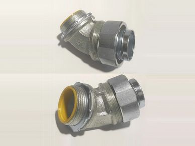 1.5" Metallic 45°Angle Liquid Tight Connector, Insulated, Malleable Iron.